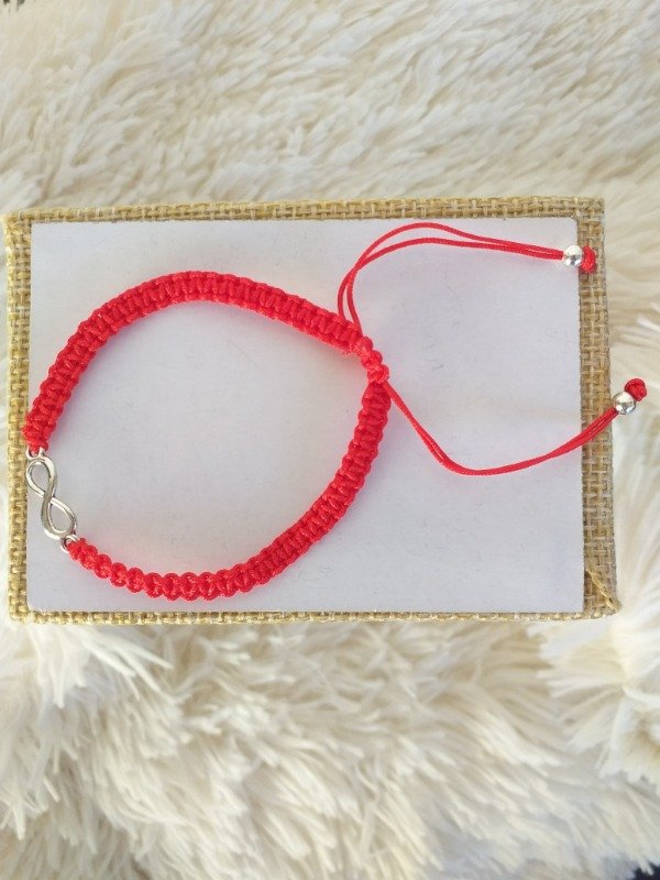 ABP0058 Pulsera de Hilo Rojo Tejido Infinito Ajustable