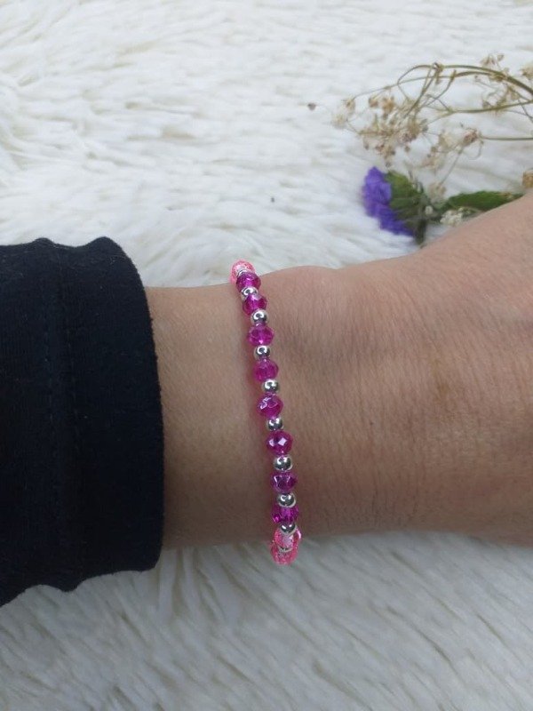 ABP0085 Pulsera Cristalizada Rosa Degrade con Bolitas y Dije de Corazón