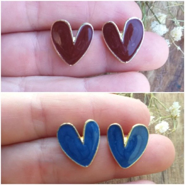 ADA0140 Corazón Esmaltado chocolate/ azul marino dorado (dos pares)