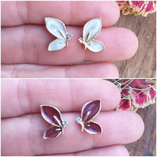ADA0143 Mariposa Esmaltada natural/ chocolate dorado (dos pares)