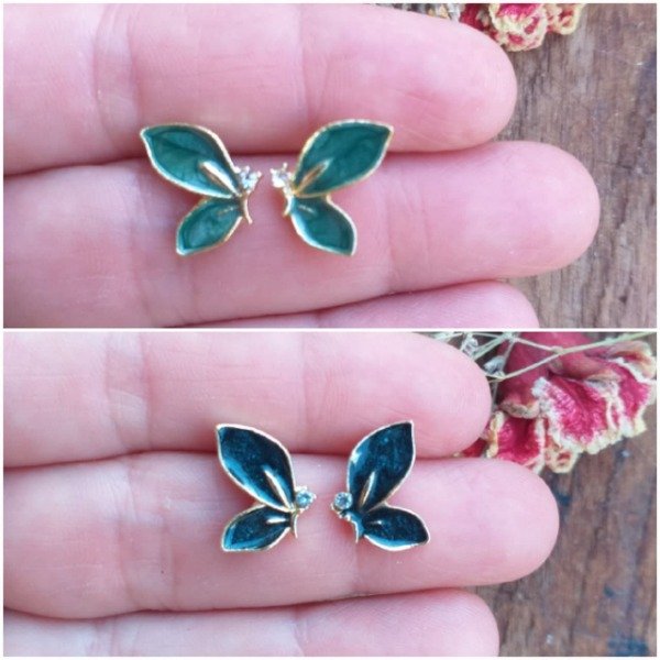 ADA0144 Mariposa Esmaltada verde/ negro dorado (dos pares)