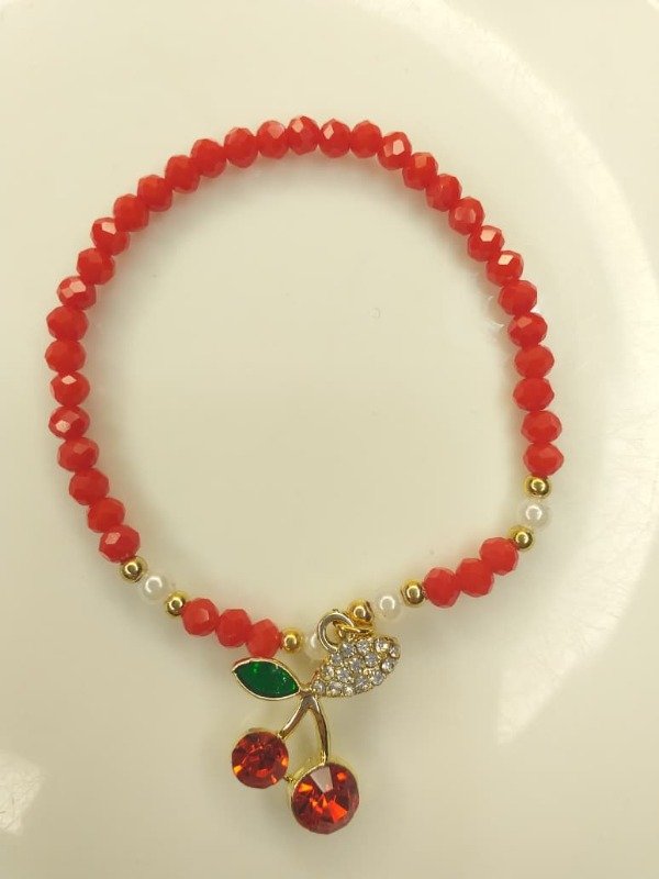 ADP0044 Pulsera Elastizada Piedritas Rojas con Dije Cereza