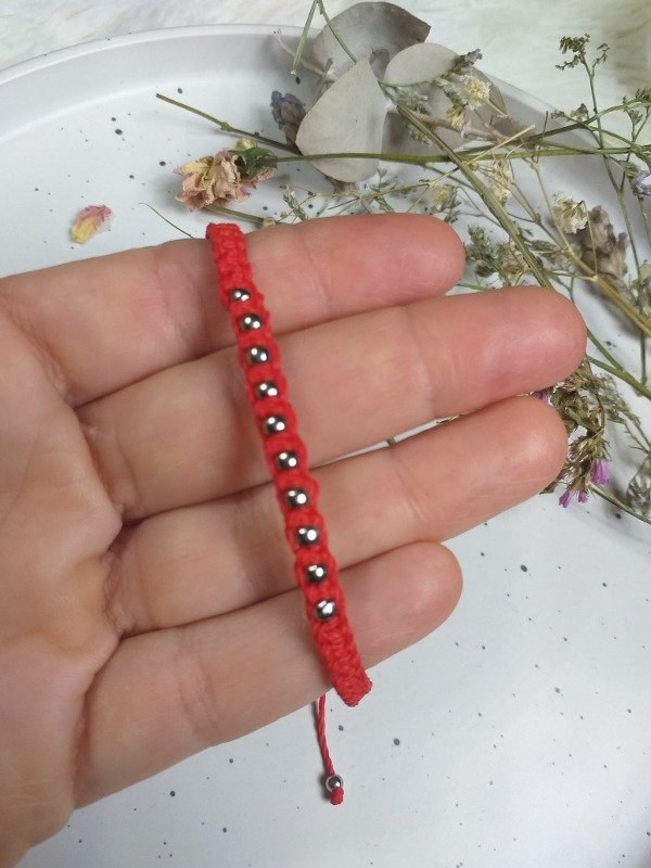 PULSERA DE HILO CON BOLITAS DE ACERO PEQUEÑAS