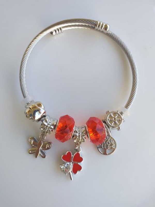 AQP0128 Pandora Rígida C Trebol Rojo Strass con Charms