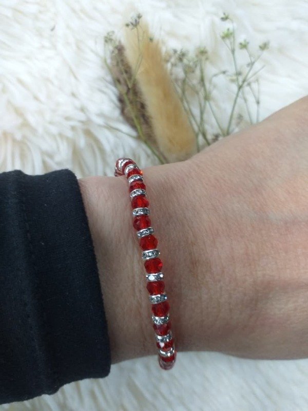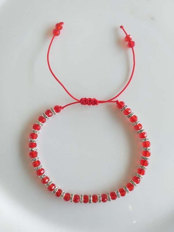 AQP0137 Pulsera Hilo Cristal Rojo con Dona Ajustable