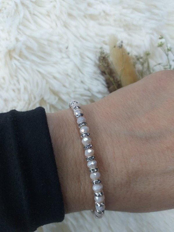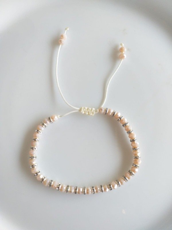 AQP0138 Pulsera Hilo Cristal Natural con Dona Ajustable