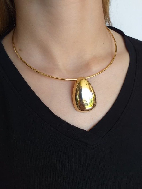 Conjunto Collar Rígido Gota Bombé dorado con Aros