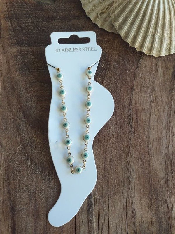 Tobillera ADorado Ojito Blanco y Aqua